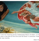 A mural created for TELUS in the late nineties, (BC Tel) and given a major refurbishing a few years ago, was created in the aftermath of some tragic events on this prominent corner in Sidney, BC. In an effort to change the character and ambience of that part of town, the phone company put up seed money for a mural that would unite the native and mainstream community, particularly the youth who used to hang out there. The wall was over 70’ long and almost 20’ high.