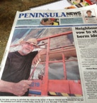 Unveiling day was a major event, the town closed the road, TV cameras showed up to tape it for broadcast, seniors centre and old folks homes brought in the seniors on a bus that was donated for the event. Local businesses provided refreshments. Young people from the local youth club were on the roof of the building to pull up the tarps when ready, youth from the local First Nations community were out dance a blessing with the support of a huge honor drum and drummers.