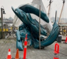 Four Winds: a mixed media sculpture. Commissioned by Amadon Estates in 2009 for installation in front of their building on the upper harbour in Victoria BC. specific requirements were that it appear indigenous, but not tribal, and reflected on the changing environment. Soil conditions on the waterfront prevented the use of heavier materials